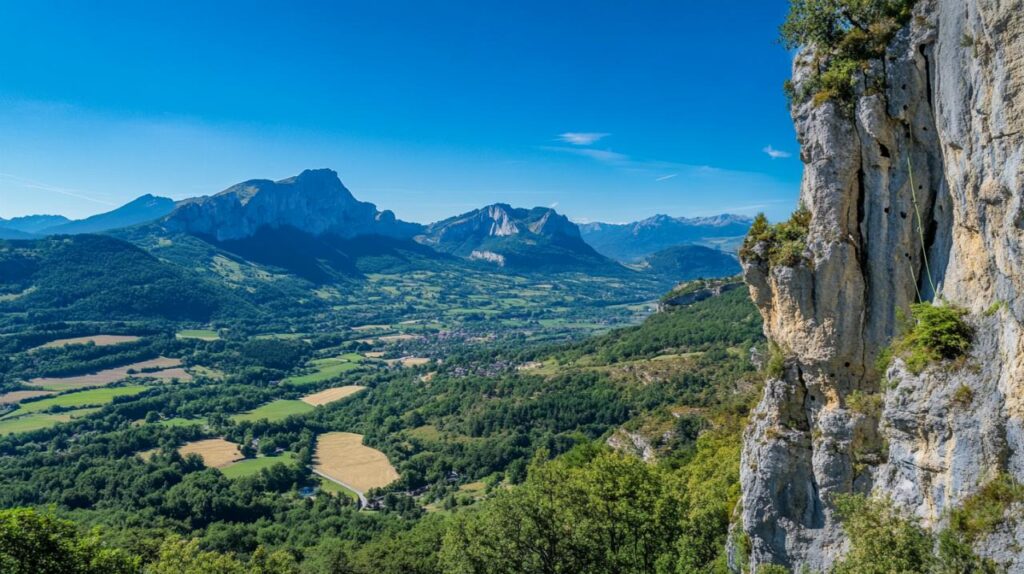 La progression sur la via ferrata du Claps dévoile progressivement des perspectives aériennes saisissantes sur l'ensemble de la vallée de la Drôme. Au fur et à mesure que l'altitude augmente lors des 200 mètres de dénivelé du parcours, le regard embrasse un paysage alpin d'une richesse remarquable où se mêlent forêts, cours d'eau et reliefs montagneux caractéristiques de cette région des Alpes. Ces points de vue en hauteur, accessibles uniquement aux pratiquants équipés du matériel de sécurité adéquat, offrent des opportunités photographiques rares qui justifient pleinement les efforts consentis durant les sections difficiles de la via. Le viaduc de 244 mètres de long et 44 mètres de haut, construit au début du vingtième siècle pour la ligne ferroviaire Valence-Briançon, ajoute une dimension patrimoniale au panorama, témoignant de l'audace architecturale des ingénieurs qui ont su apprivoiser ce territoire accidenté.